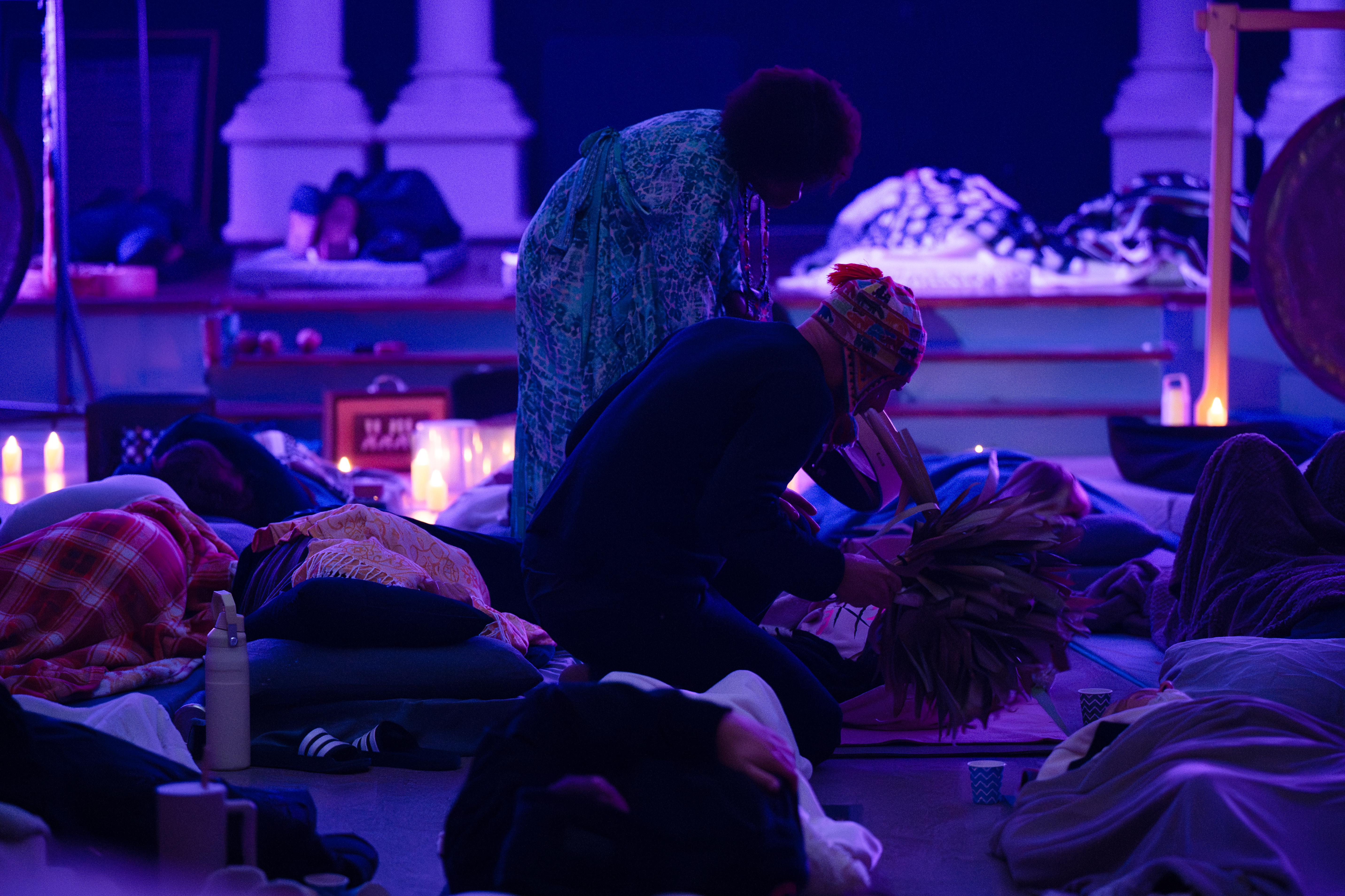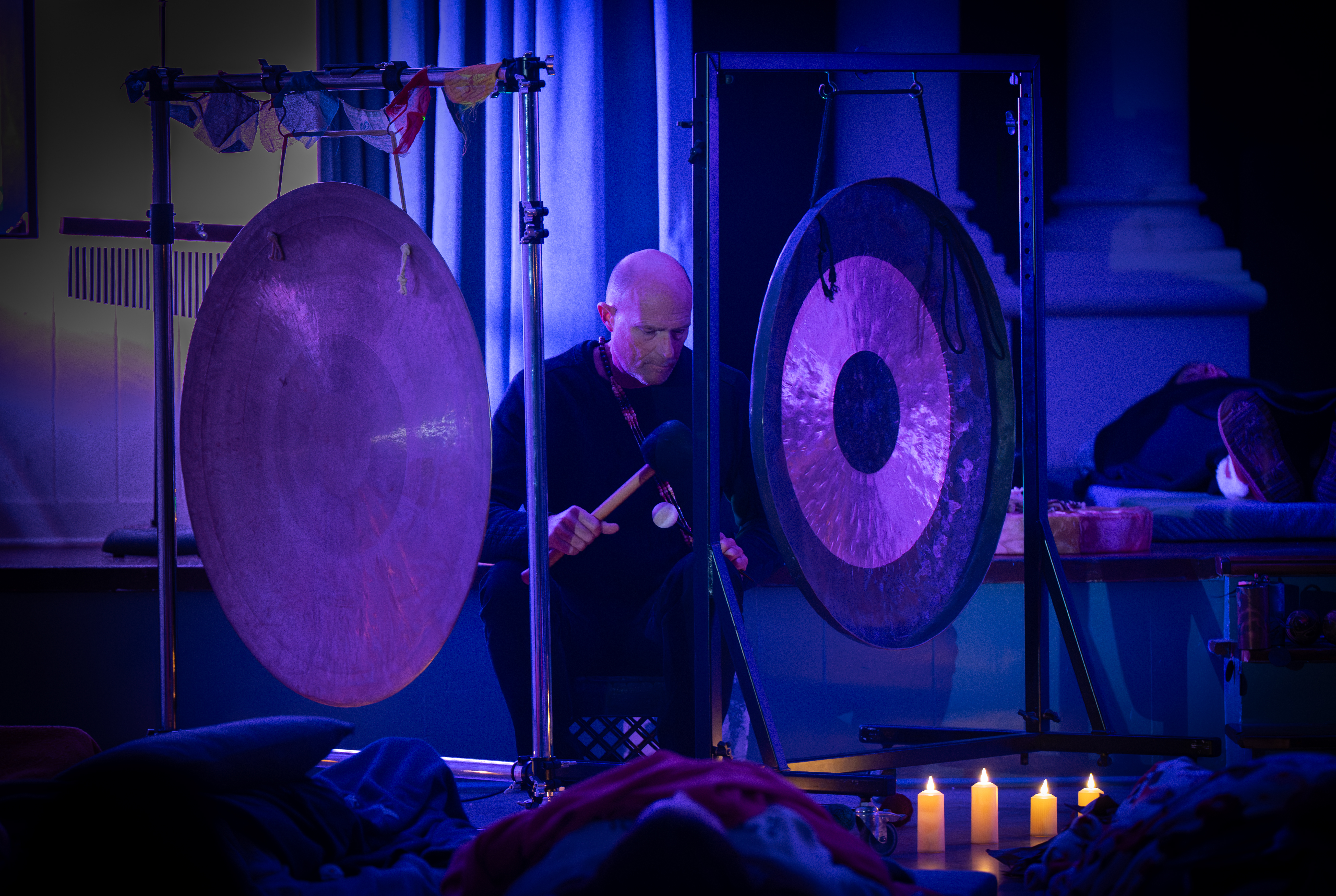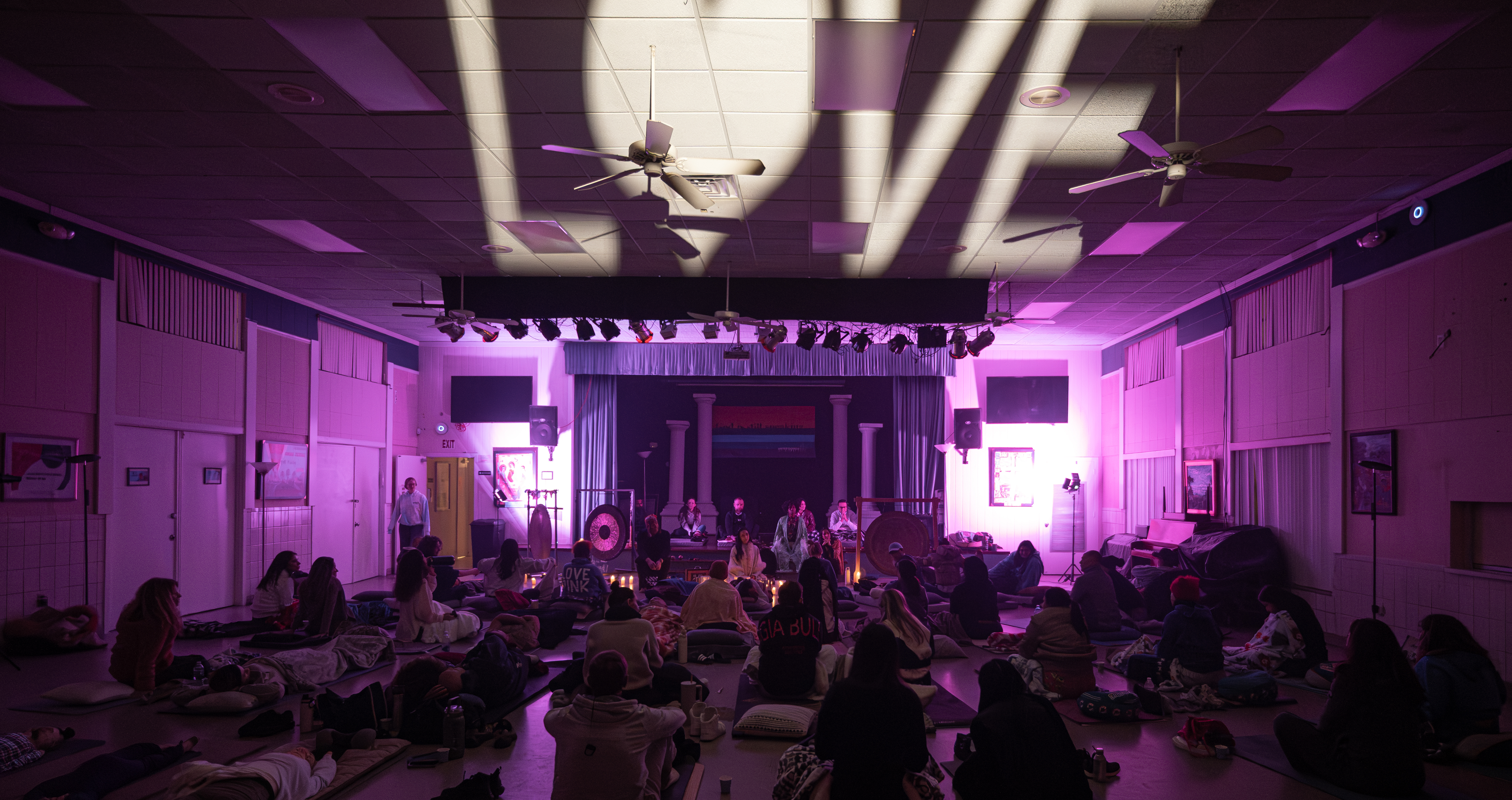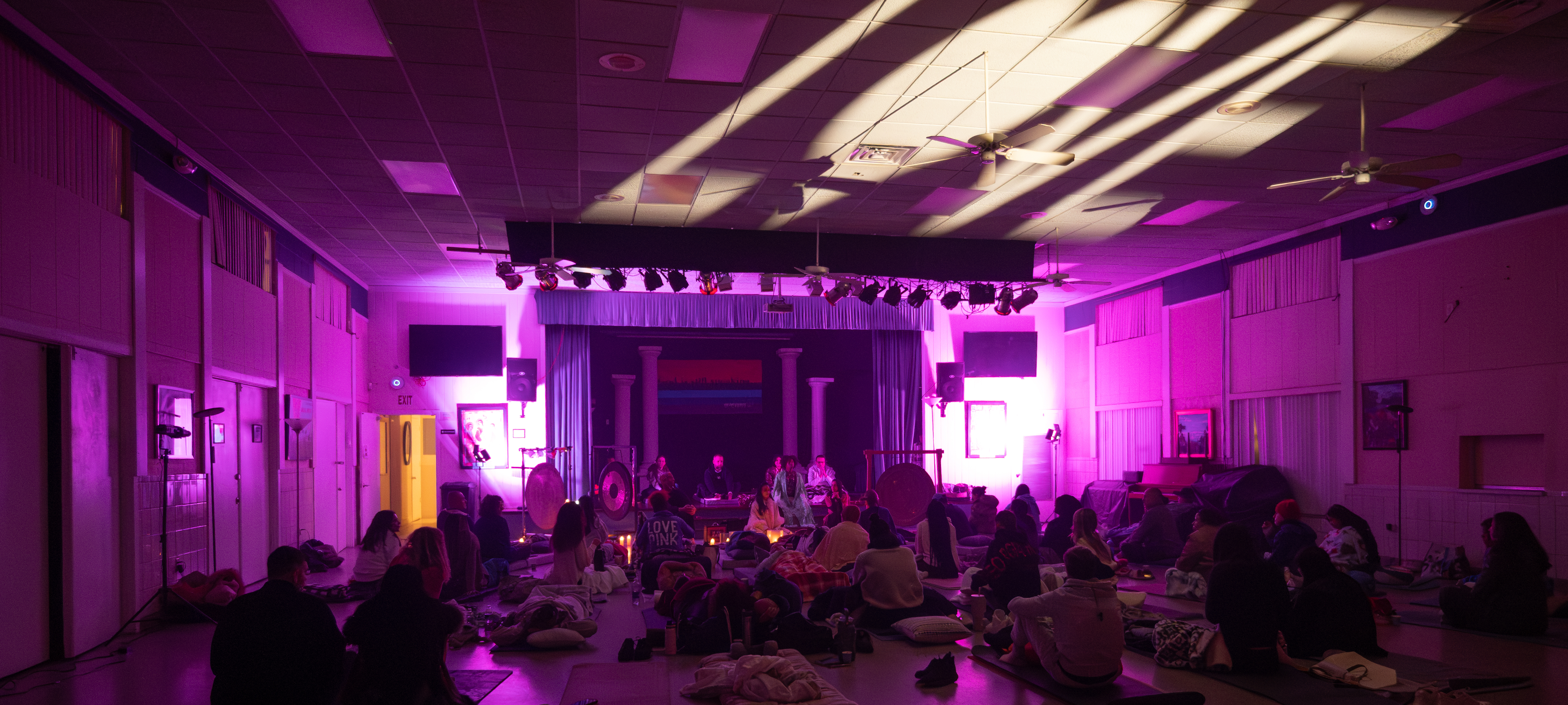 Experience live instruments, mantra meditation, and immersive sound designed to calm the nervous system